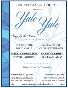 18 hours ago 0 commentsSTUFF THE FIRE TRUCK — TOYS FOR TOTS Saturday, December 6th 9 a.m. – 2 p.m. Help local children experience a brighter holiday season! Join Kingsville Firefighters and Sparky at the Red Apple parking lot. (33 Division Road North, Kingsville) Help us as we Stuff the Fire Truck for our local […]