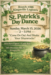 9 hours ago 0 commentsExplore Kingsville’s many recreational programs. Here’s what’s available the week of March 9, 2026. Monday Kingsville Arena Drop-In Indoor Pickleball – 7:30 am to 1:00 pm Adult Skating – 9:00 am to 9:50 am Shinny – 10:00 am to 10:50 am Home School Skate – 12:00 pm to 12:50 pm Home School Shinny – 1:00 […]