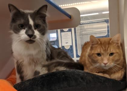 Heath and Pip are a bonded pair of best friends who embody the term opposites attract. Heath (11) is a curious and playful kitty who loves attention. Pip (6) prefers the quiet life, he is very timid and shy and would rather keep a low profile and watch his buddy play from afar.