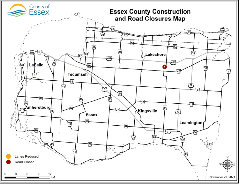 County Road 31 will be closed between County Road 46 and North Middle Road on December 3, 2021 from 7:30 a.m. to 5:00 p.m. for culvert replacement (Map ID#1)
