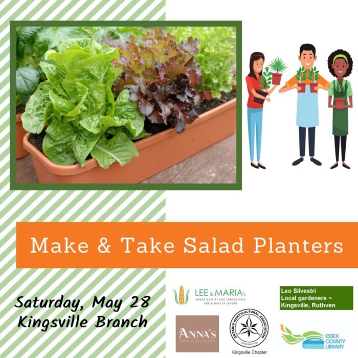 Stop by the Kingsville branch Saturday, May 28 and get your fingers dirty! You will receive: 1 pot, potting soil and a variety of edible plants.