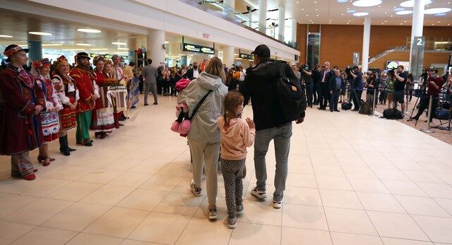 On Monday, the first federal charter flight carrying 328 Ukrainians arrived in Winnipeg, welcomed by the Honourable Chrystia Freeland, Deputy Prime Minister, Manitoba Premier Heather Stefanson, and James Armstrong Richardson International Airport volunteers.