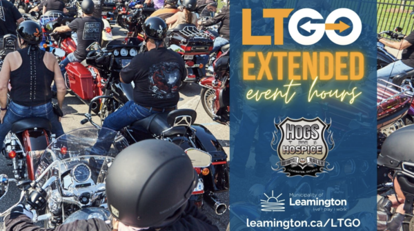 The Municipality of Leamington is pleased to announce that it will extend its LT-Go Transit operating hours this weekend to accommodate concert-goers attending the Hogs for Hospice Motorcycle Rally concert events on Friday, August 2, and Saturday, August 3, 2024.