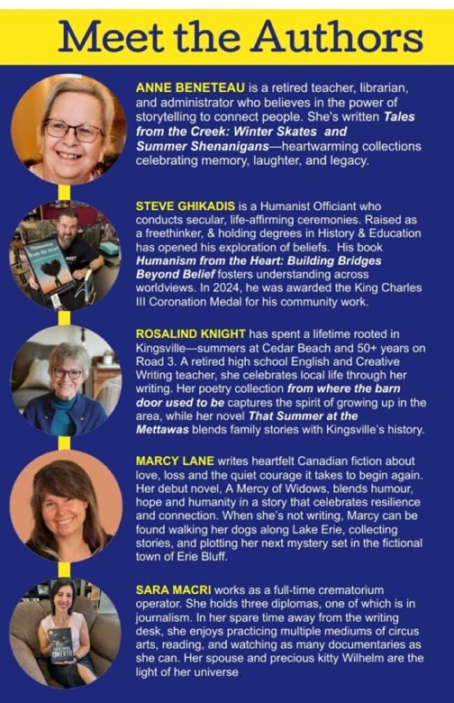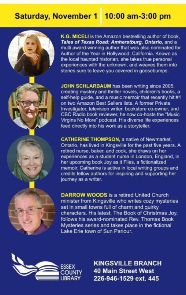 Join us Saturday, November 1 from 10:00 am to 3:00 pm at the Kingsville Branch for the MEET THE AUTHORS event.