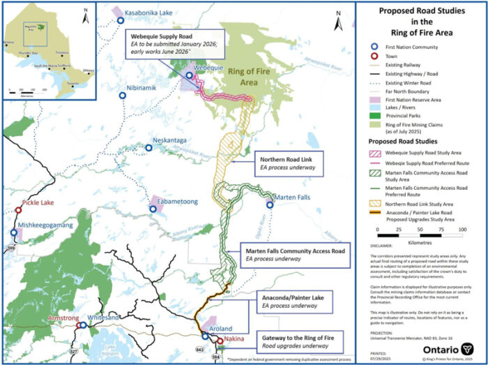 Ontario signed an agreement with Aroland First Nation in January 2025 and is also working with other First Nations along the entire proposed length of the roads to the Ring of Fire on further potential partnerships.