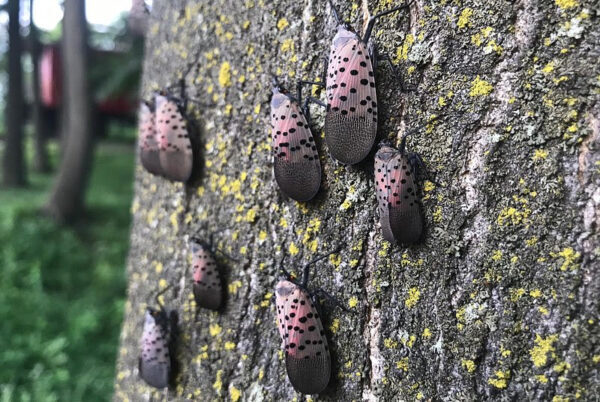 Feeding in great numbers on more than 100 plant species, with a strong preference for grapevines, spotted lanternfly disrupts the flow of sugars needed by the plant. Heavy feeding can significantly weaken and sometimes kill grapevines.