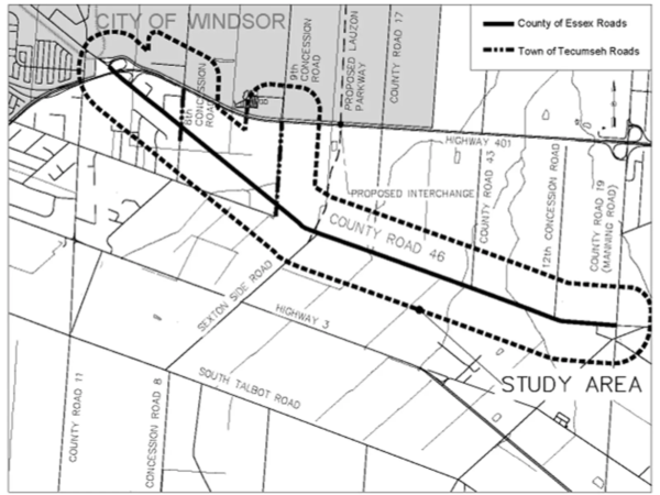 An Environmental Assessment Study for improvements to County Road 46 from Highway 401 to County Road 19 (Manning Road), jointly commissioned by the County of Essex and Town of Tecumseh, has been completed.