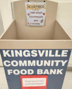 The Kingsville Community Food Bank is always ready to bring some welcome relief, this time of year, and any other time. We appreciate the Food Bank volunteers, and our community members for their help in meeting needs.
