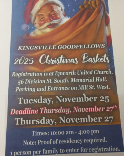 Registration for Baskets will take place at Epworth United Church on the following dates: