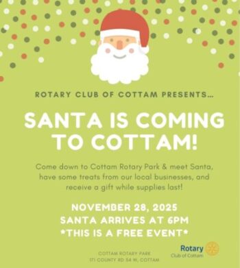 We want to invite you down to Cottam Rotary Park on November 28 at 6PM for a Meet and Greet with the jolly man himself!