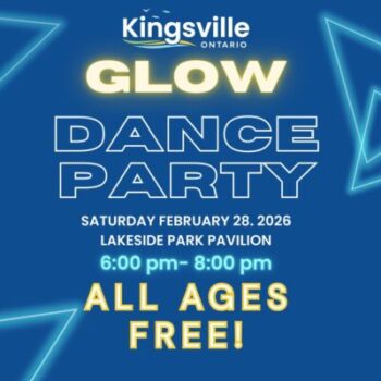 Join the Town of Kingsville for music and dancing. Hit the dance floor, enjoy a great DJ, play interactive games like glow-in-the-dark hopscotch and ring toss, and get creative with glow paint.