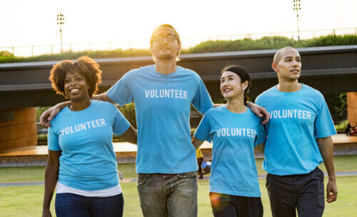 Group of happy and diverse volunteers