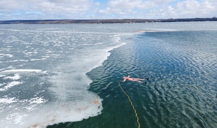 I’m still Cold Water Swimming but the ice has limited my action this past month. However it opened enough for me to get in twice last week. I’ve been CWS for 5 years and this is the first winter I’ve been unable to go in the water because of ice in for this long — 44 days!
