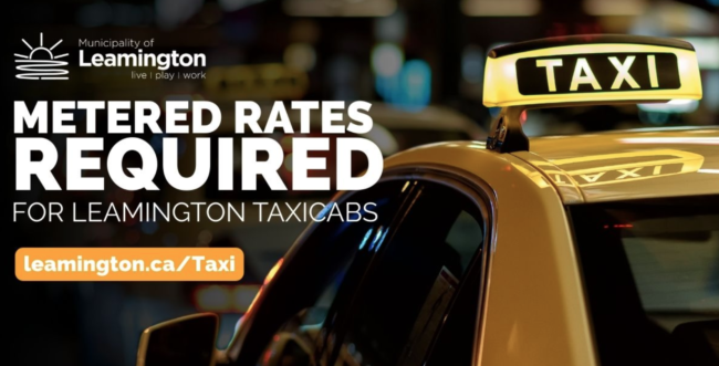 Effective May 1, 2026, all taxicabs operating in the Municipality of Leamington will be required to use a taxicab meter. This change replaces the current flat rate system and follows the adoption of By-law 30-26.