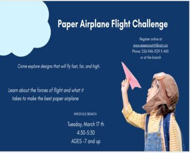 Paper Airplane Flight Challenge at Kingsville Library March 17