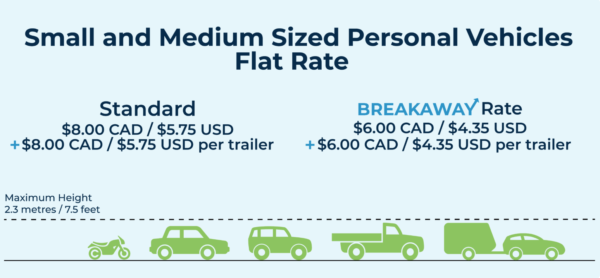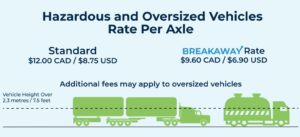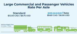 Pricing is based on passenger and commercial vehicle classifications, the number of axles and vehicle height.