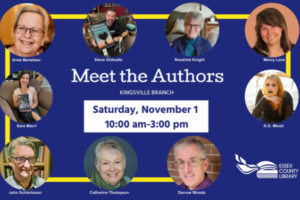 Join us Saturday, November 1 from 10:00 am to 3:00 pm at the Kingsville Branch for the MEET THE AUTHORS event. Meet your next favourite local author, explore unique stories, purchase signed copies of books and support our local writing community! Each author will have their own table in branch […]