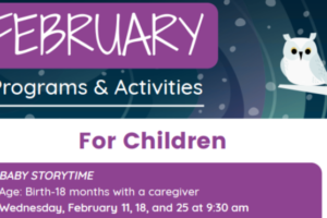 February Programs & Activities for Children Baby Storytime Wednesdays, February 11, 18 and 25 9:30 a.m. Age: Birth to 18 months with a caregiver Music and Movement Tuesdays, February 10, 17 and 24 10 a.m. Age: 19 months to 5 years with a caregiver STEM: Valentine’s Day Saturday, February 14 […]
