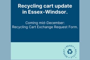 Essex-Windsor residents who would like a smaller recycling cart will soon have the option to request an exchange. Beginning mid-December, Circular Materials will make a Recycling Cart Exchange Request Form available on their website. This form will allow residents to swap their current 360-litre recycling cart for a 240-litre cart. Click here to visit […]