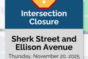 Paving work on Sherk Street is scheduled to begin today, Thursday, November 20, 2025, as part of the ongoing area sewer separation and road reconstruction project. To safely complete this work, the intersection of Sherk Street and Ellison Avenue will be closed for the day, following the morning bus routes. Motorists are asked […]